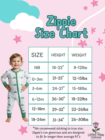 Most customers find they runt true to size to generous — but last much longer than typical cotton pajamas, due to the amazing stretch our bamboo has. If you’re in between sizes, we usually suggest going with your child’s current size for a snug, safe sleep fit. Please refer to our sizing charts for the most accurate measurements.